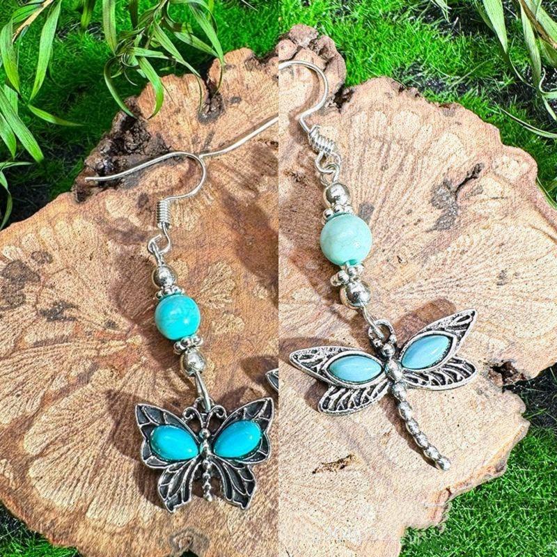 New Design Elegant and Cute Ethnic Style Turquoise Dragonfly Butterfly Fashion Pendant Earrings
