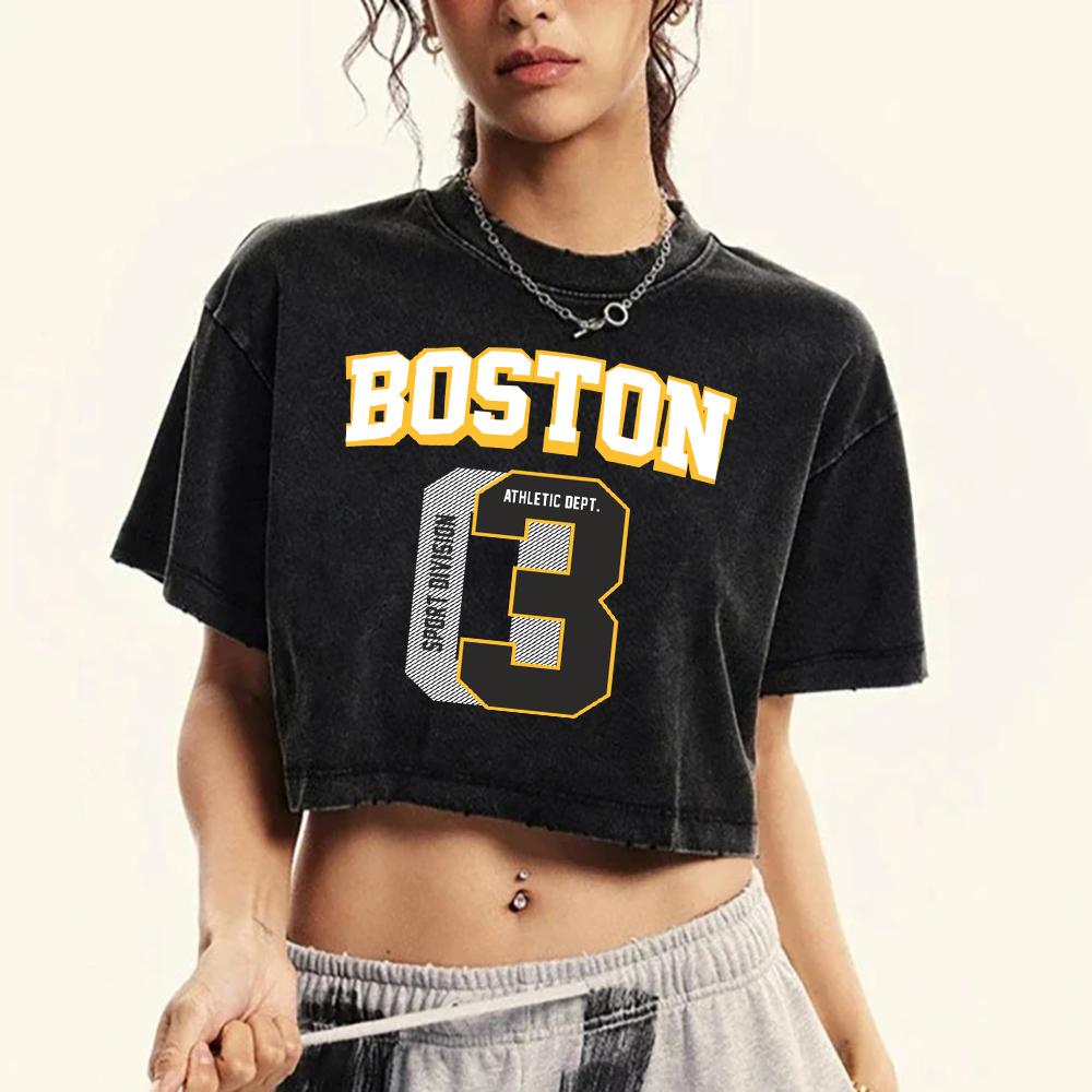 Boston 03 Creative Letter Print Women Washed T-Shirts Cotton Fashion Short Sleeve Fashion Personality Tops T Shirt