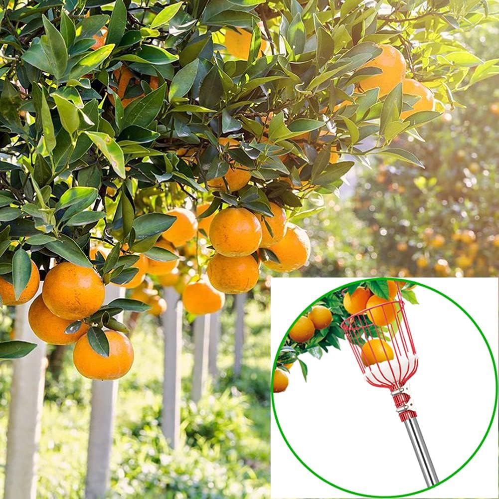 Fruit Picker Pole Tool2.4M3.2M4.0MStainless Steel Extension Pole with Fruit Grabber Basket,Lightweight Fruit Picking Equipment for Getting Apple,13 Ft