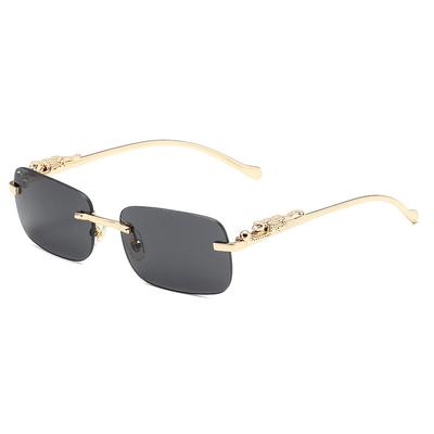 Fashionable Trendy Frameless Rectangular Personalized Sunglasses Metal Leopard Leg Men Women Sun Glasses New Lentes