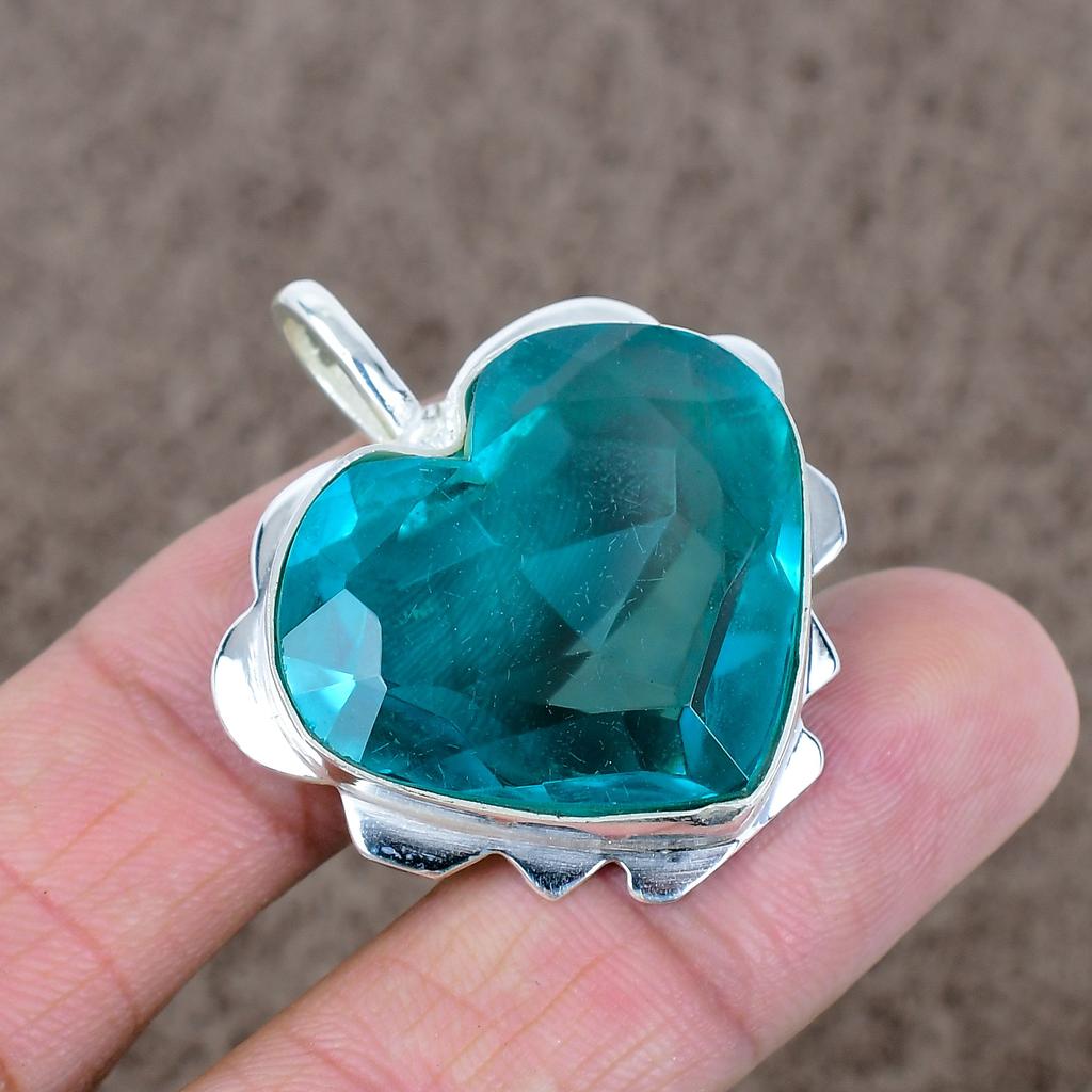 Indicolite Tourmaline Gemstone 925 Sterling Silver Jewelry Pendant 1.58" KKG-554