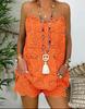 Discover the perfect blend of comfort and style with this chic summer ensemble. This set features a sleeveless camisole adorned with playful ruffles, paired with intricately embroidered cotton shorts. Crafted from a harmonious blend of cotton and linen, the outfit offers a breezy and lightweight feel ideal for warm weather. Perfect for casual outings or lounging, this set effortlessly combines elegance with laid-back charm.