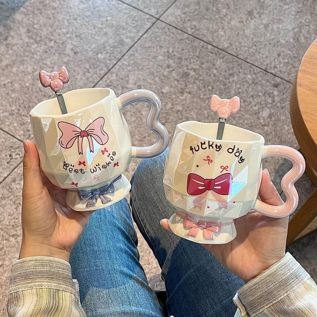 Bow Mug High Looking Girl Heart Cup Ceramic Water Cup Home Couple Office Coffee Breakfast Cup