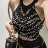 French Short Halter Knitted Camisole Women's Summer Outerwear Hot Girl Sleeveless Off Shoulder Camisole Inner Wear Black Top