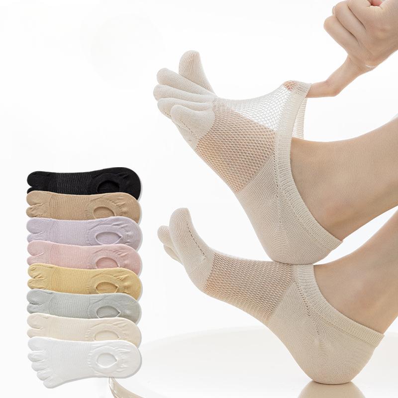 Boat Socks, Invisible Socks, Women's Summer Thin Five-finger Socks, Women's Mesh Anti-slip Shallow Mouth Boat Socks, Boneless Women's Socks