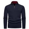 Men's Vertical Pitted-Stripe Knitted Sweater With Half-Zip Stand Collar
