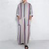Experience comfort and style with this elegantly designed Muslim robe for men, featuring a sophisticated stand collar and long sleeves. Made entirely from premium cotton, this robe ensures a soft and breathable feel, perfect for any occasion. The standout gradient stripe design, inspired by the vibrant cultures of Southeast Asia, adds a touch of modern flair to traditional attire, making it an excellent choice for those seeking both cultural authenticity and contemporary fashion.