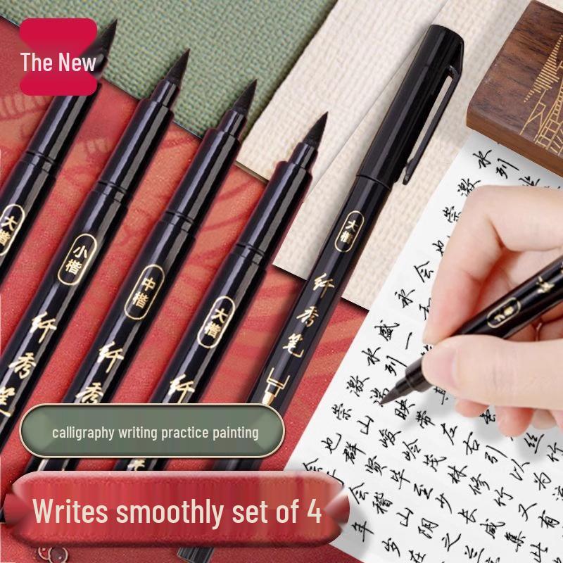 Calligraphy Practice Pen with Soft Brushstroke - Includes Fine, Medium, and Large Regular Script Tips; Refillable and Perfect for Sutra Copying.