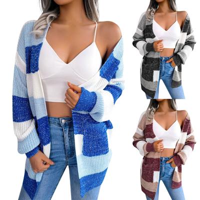Women's Fashion Stripe Coats Long Sleeved Knitted Casual Cardigan Sweater Jacket
