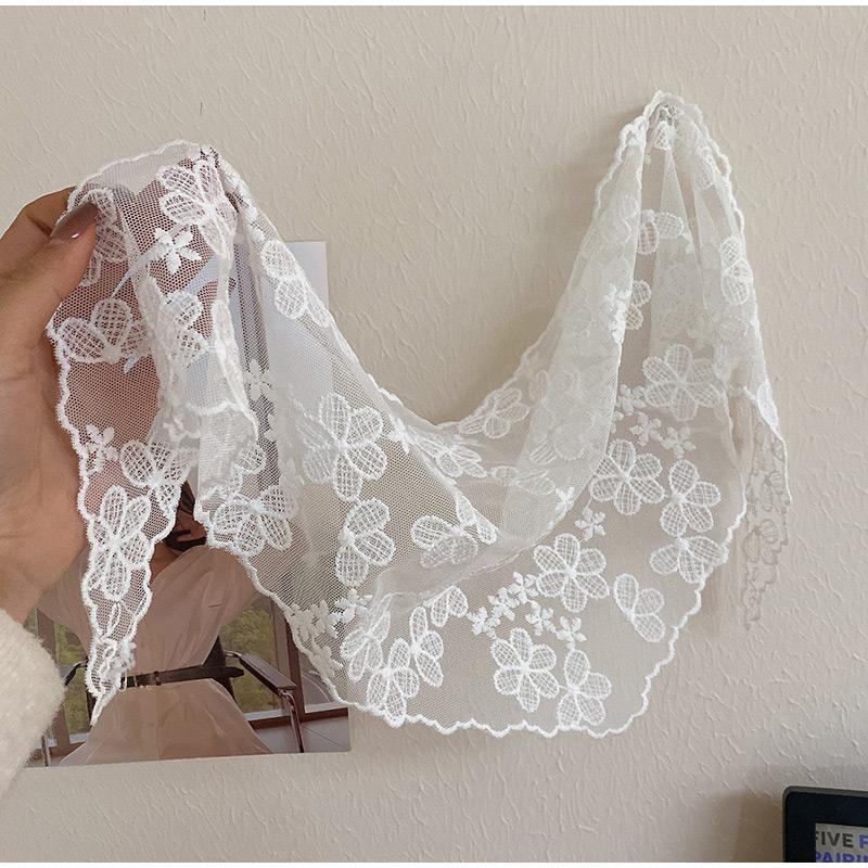 White Woven Floral Lace Hair Scarf Wraps Women Retro Triangle Headscarf Hat Travel Photo Headband Hair Accessories French Style