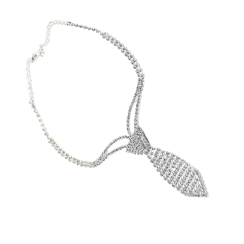 Sparkly Rhinestones Necklace Short Tie Gothic Choker Crystal Metal Chain Necktie for Women Wedding Jewelry Neckwear