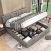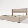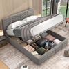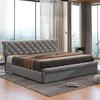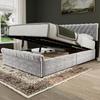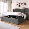 Upholstered Bed 140x200cm, Hydraulic Double Bed, Slatted Frame, Bed Box, Adjustable Headboard, Velvet, Grey, Without Mattress