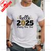 Men's Comfort Cotton T-Shirt with "Hello 2025" Print Casual Crew Neck Short Sleeve Machine Washable Round Neck Short-sleeve