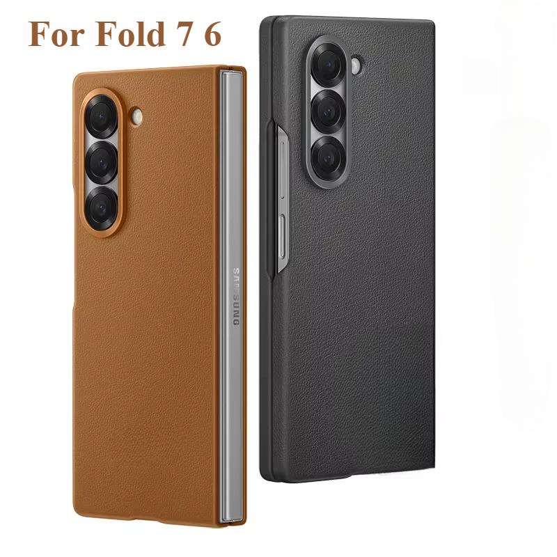 Luxury Business Ultra-thin Eco Friendly Skin Feel Leather Phone Case for Samsung Galaxy Z Fold 7 Fold 6 Metal Len Frame Shock Proof Protection Cover