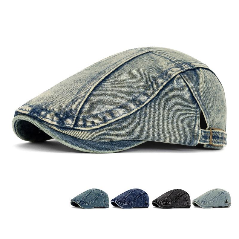 Vintage Denim Beret Women British Newspaper Boy Progressive Cap Solid Color Peaked Cap for Men