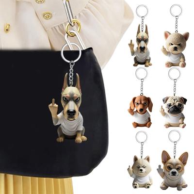 Middle Finger Posture Puppy Keychain 3D Dog Design Key Chain Backpack Cool