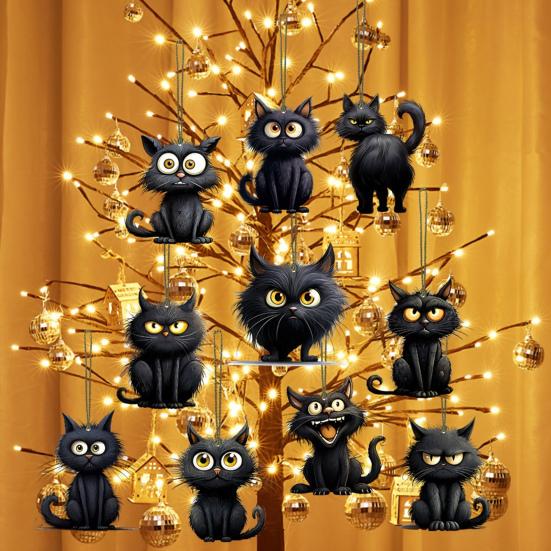 Enhance your space with this charming black cat decoration that is easy to hang. Crafted from high-quality acrylic materials, this hanging decor is both safe and durable, ensuring long-lasting use without fading. The lifelike cat design captures the playful essence of feline companions, making it a delightful addition to your home decor.