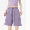 Women Solid Color Sport Casual Elastic Waist Shorts Drawstring Wide Leg Pants Summer Cotton Linen Beach Shorts