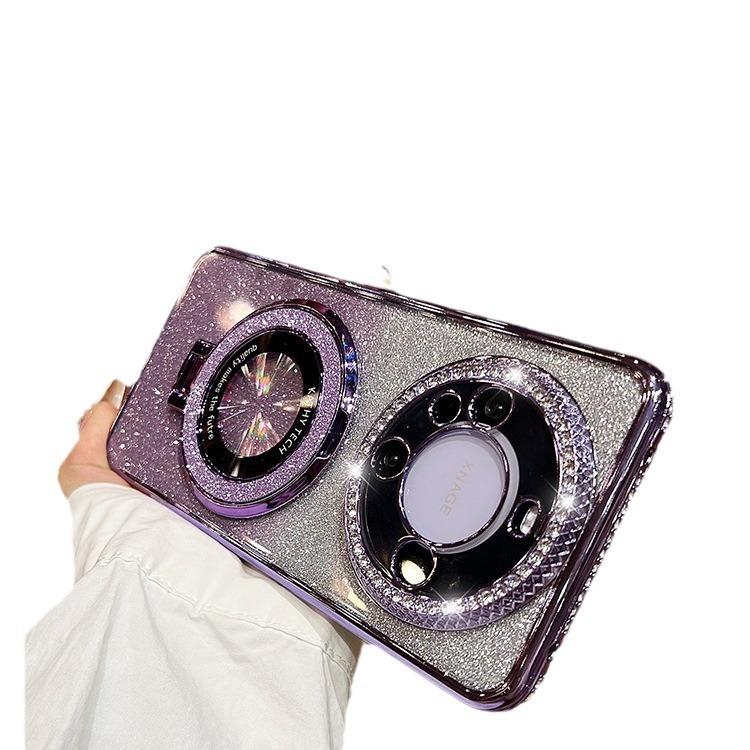 Magnetic Glitter Stand Is Suitable for Huawei Mate60pro Phone Cases with Water Diamond Edge Gradient P70 and P60 Couple