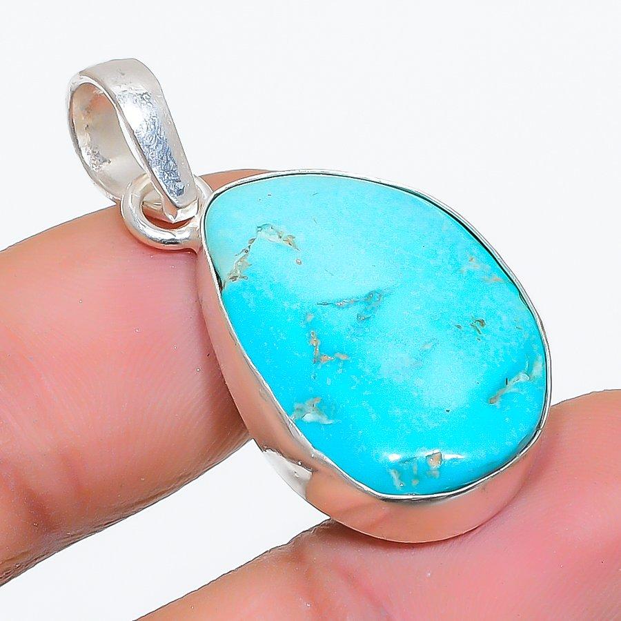 Tibetan Turquoise Gemstone 925 Sterling Silver Jewelry Pendant 1.46" GK-5110