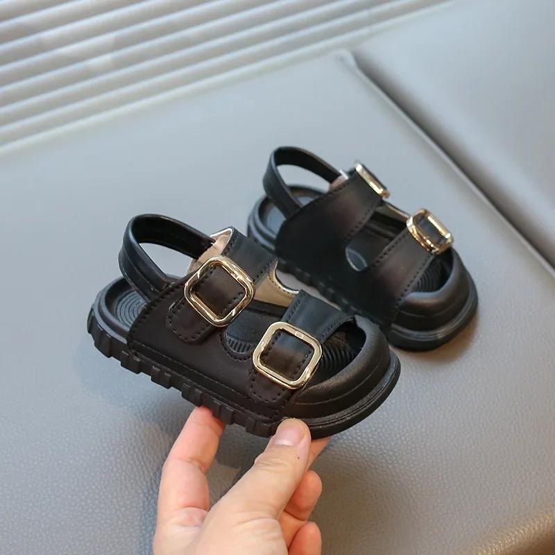 Kids Fashion Shoes Soft Sole Toes Capped Boy Girls Sandals Non-slip 2025 Summer New Children Beach Shoes Hook&loop Solid Color