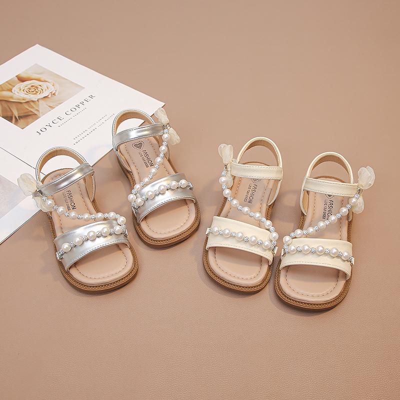Girls Sandals Open Toes Mesh Lace Bows Kids Beach Shoes Soft Sole Sweet 2025 Summer New Children Princess Shoes Shiny Crystal