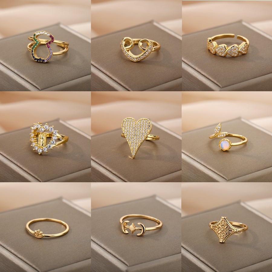 New Geometric Heart Shaped Zircon Open Ring for Women's Niche Design, Finger Ring, Light Luxury Fashion Accessories