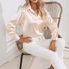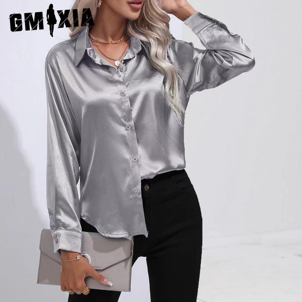 GMXIA Shirt Women's High-end Simple V-neck Cardigan Shirt Women's Loose Long-sleeved Button-up Top