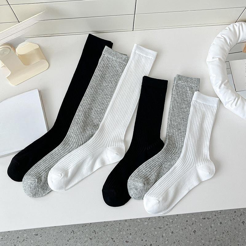 Ladies Summer Thin Vertical Bar College High Tube Calf Cotton Socks