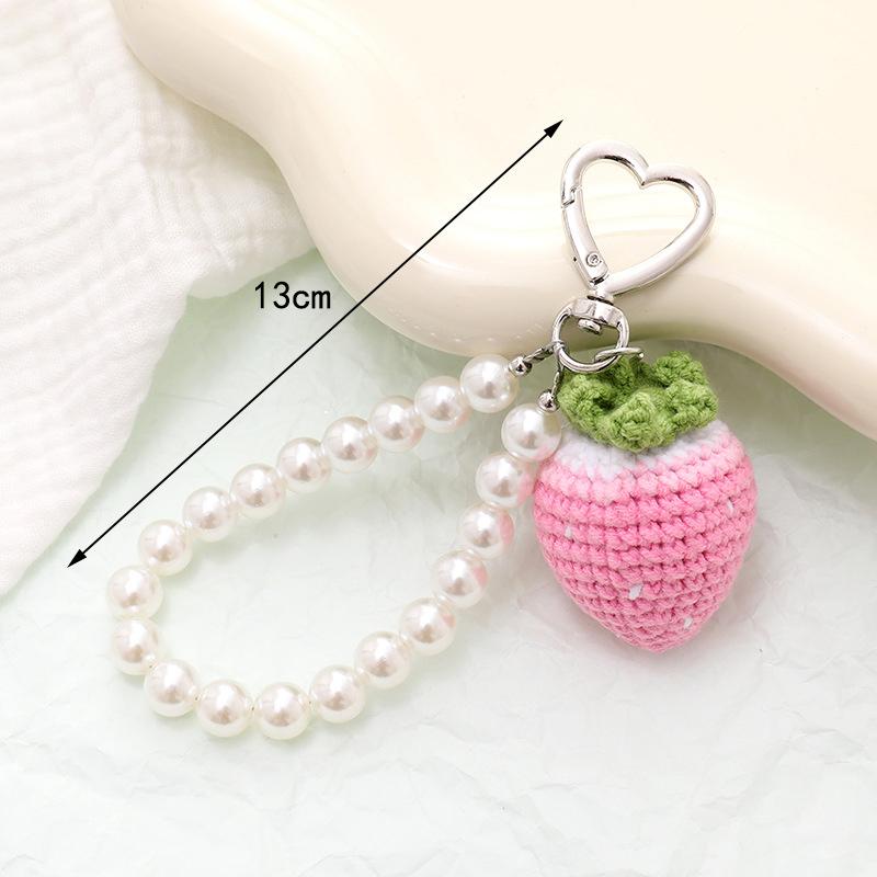 Creative Handwoven Fruit Strawberry Pearl Chain Keyring Cute Versatile Keychain Bag Pendant Camera Hanging Decor Girls Gift