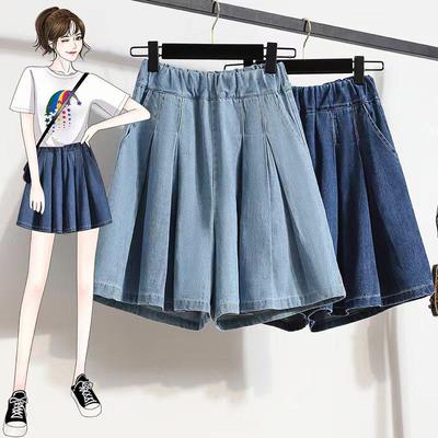 Ladies' Trousers Big Size Women's Denim Shorts Wide-legged Thin Section A Word Skirt Trousers Female Summer Thin Cover Belly Five-minute Trousers