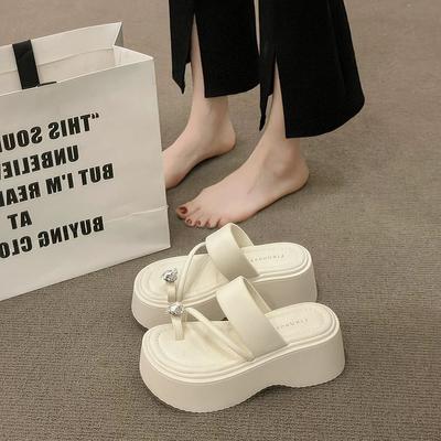 Niche Design Sense Thick Sole Heightening Cool Slippers Children 2025 Summer New Models with Skirt Toe Flip-flops Shoes Women