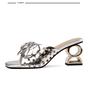 Women's High Heels Fashion Square Toe Open Toe Flower Cutout Flip Flops Summer New Shaped Heel Fish Mouth Sandals