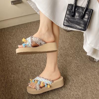 Cross Strap Comfortable Versatile Fringed Princess Platform Slippers Women's 2025 Summer New Fashion Slippers Women's Outer Wear