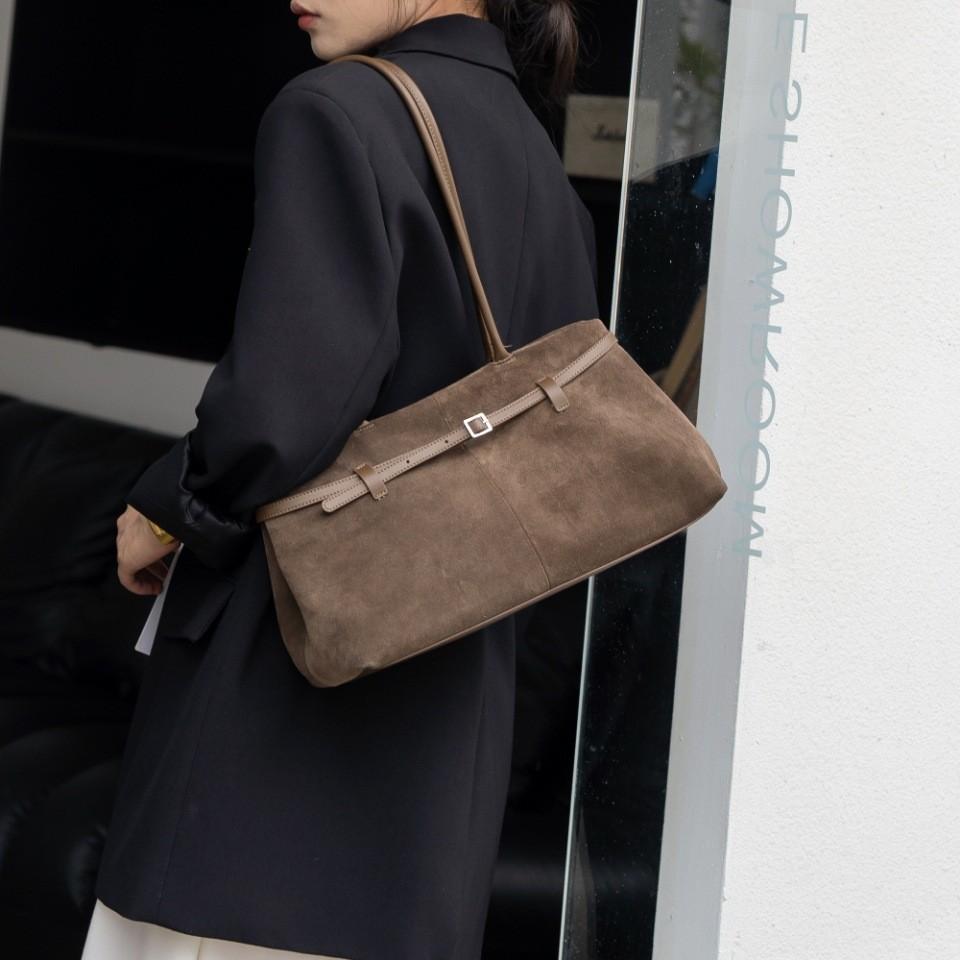 Medium and Long Large-capacity Fashion Handbag, Autumn and Winter Belt, Cowhide Matte Bag, Shoulder and Underarm Bag.
