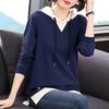 Female Fashion Casual Solid Color Spliced Hooded T-shirt Autumn Commute Simplicity Fake Two Pieces Tops Women's Clothing A794