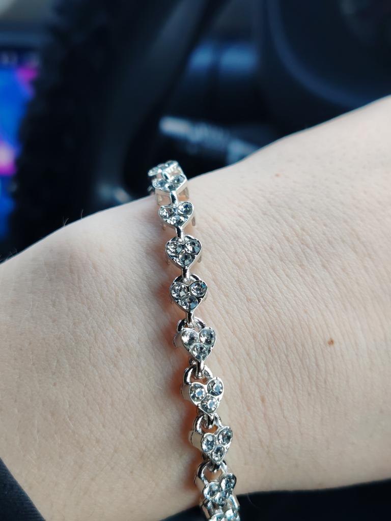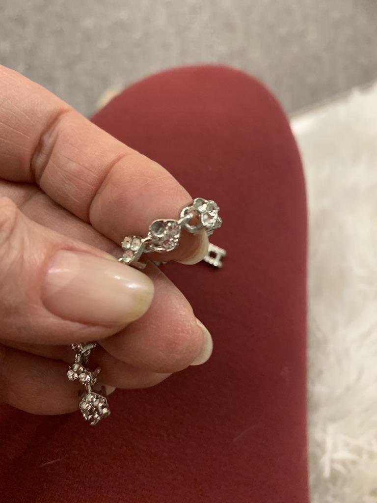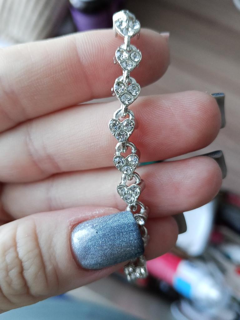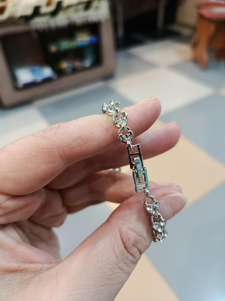 I marked it with blue, there should be a rhinestone there, it's missing, and the bracelet no longer looks like the one in the photo! Exchange it for the bracelet in the photo, or give me my money back! I waited 3 months for the parcel!