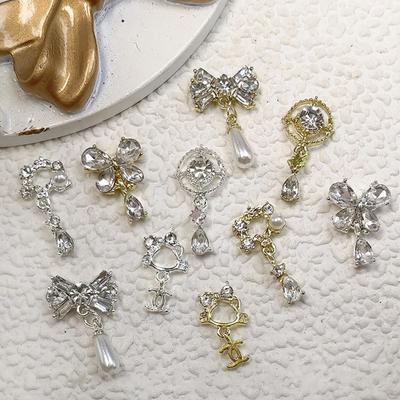 10pcs Luxury Nail Art Charms Set - 3D Alloy Butterfly, Heart, Bow & More with Rhinestones - Perfect for DIY Manicures & Pedicures