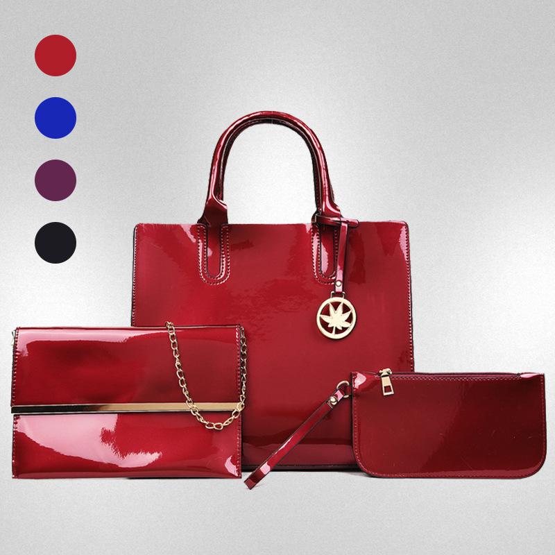 New Glossy Solid Color Women's One-shoulder Crossbody Handbag, Mother and Child Bag Three-piece Patent Leather Women's Bag