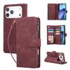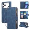 For iPhone 17 Pro Max Case Zipper Wallet Multiple Card Slots Leather Phone Cover with Wrist Strap