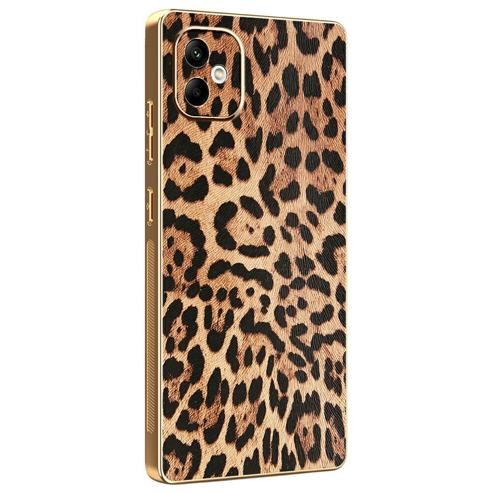 For Samsung Galaxy A05 4G Case Leopard Print PU Leather Coated PC+TPU Electroplating Phone Cover