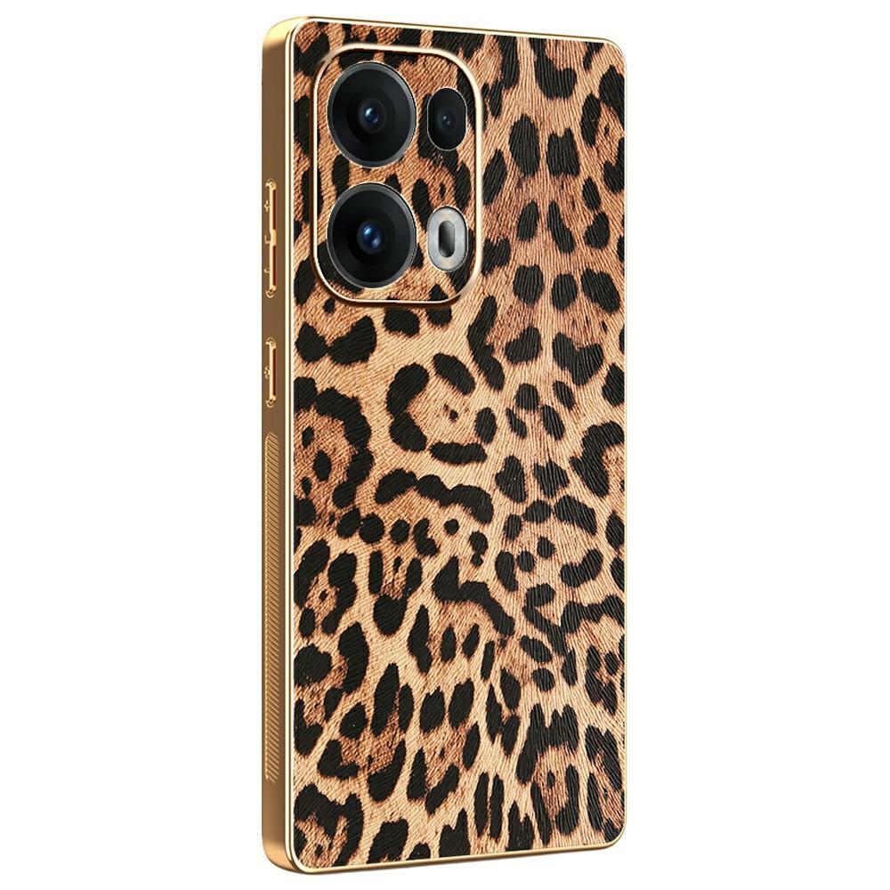 For Oppo Reno13 Pro 5G Case Leopard Print PU Leather Coated PC+TPU Electroplating Phone Cover