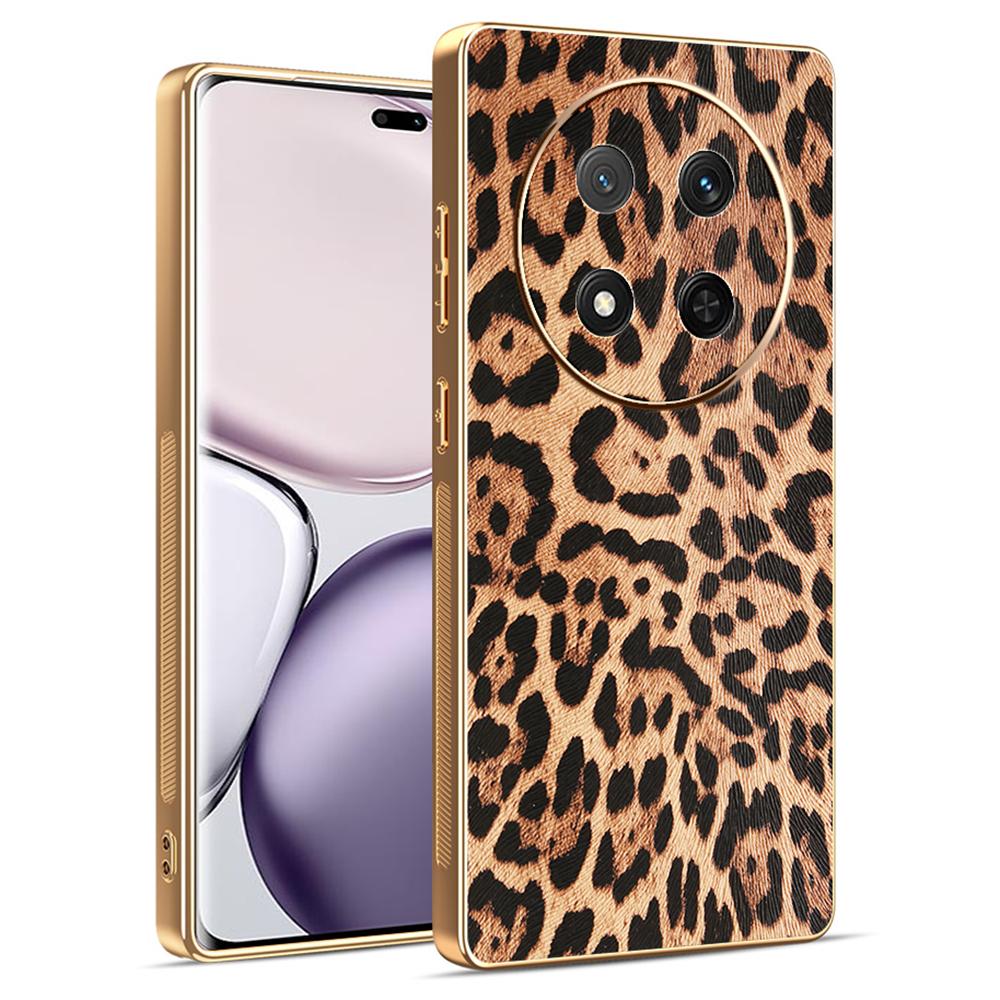 Phone Case For Honor Magic7 Lite 5G/X60 Pro 5G/X9c 5G Leopard Print PU Leather Coated PC+TPU Electroplating Cover