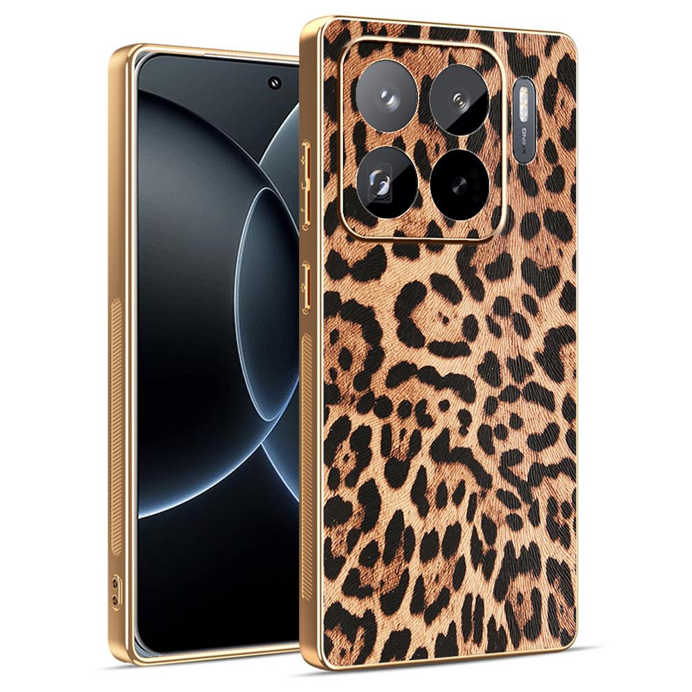 For Xiaomi 15S Pro Case Leopard Print PU Leather Coated PC+TPU Electroplating Phone Cover