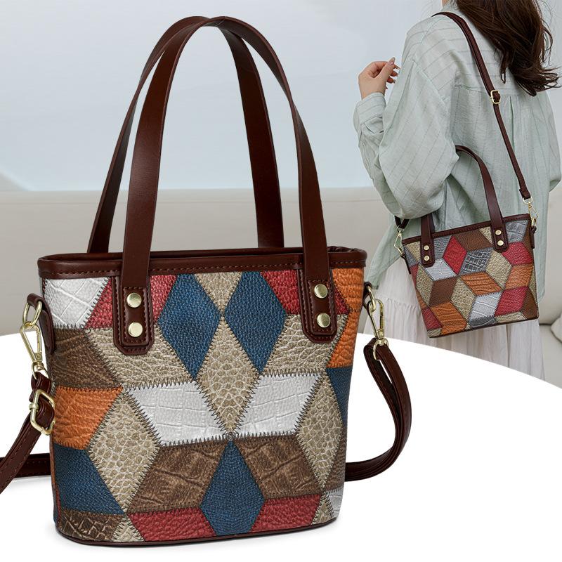 Splicing Contrasting Color Bag Women's New Trendy Fashion Texture Handbag Casual Large Capacity Shoulder Messenger Bag