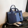 Large Capacity Denim Handbag Women's New Fashion Contrasting Color Shoulder Messenger Bag Broadband Commuter Trendy Tote Bag