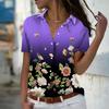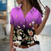 2025 Summer New Fashion Women's Flower Printed Short Sleeve V-neck Casual Button-down Shirt Top