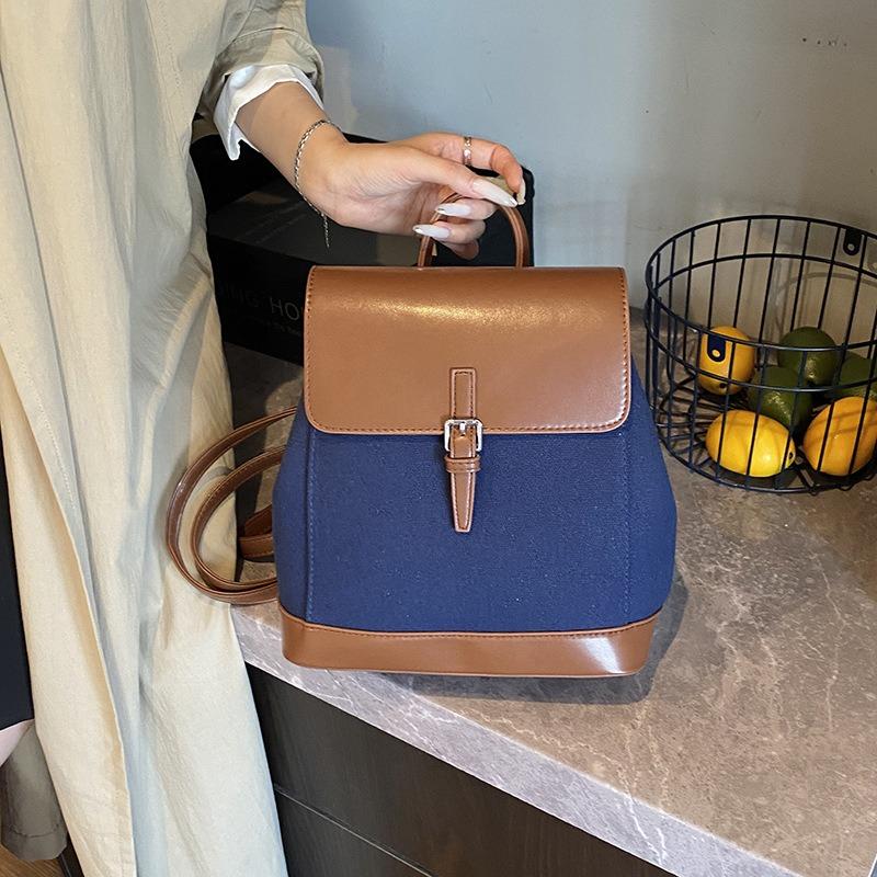 New Backpack Retro Fashion Large Capacity Contrast Color Matching Travel School Backpack