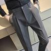 Korean Business Casual Men's Autumn New Splicing Button Zipper Pocket Fashion Solid Color Slim Versatile Straight Leg Pants