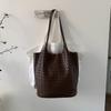 Niche Woven Pattern Hand Carrying Bucket Bag Women's New Large-capacity Commuting Shoulder Underarm Mother and Child Bag